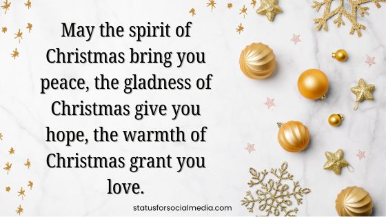 32. May the spirit of Christmas bring you peace, the gladness of Christmas give you hope, the warmth of Christmas grant you love.